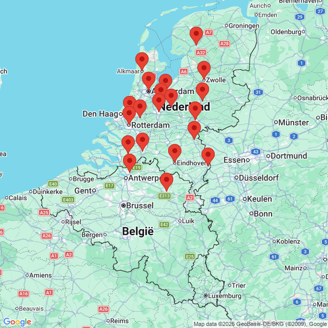 • Locaties: Almere, Amsterdam, Arnhem, Eindhoven, Hilversum, Heerenveen, Rotterdam en Zwolle.